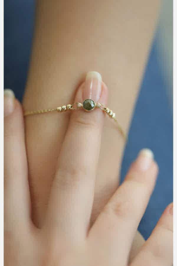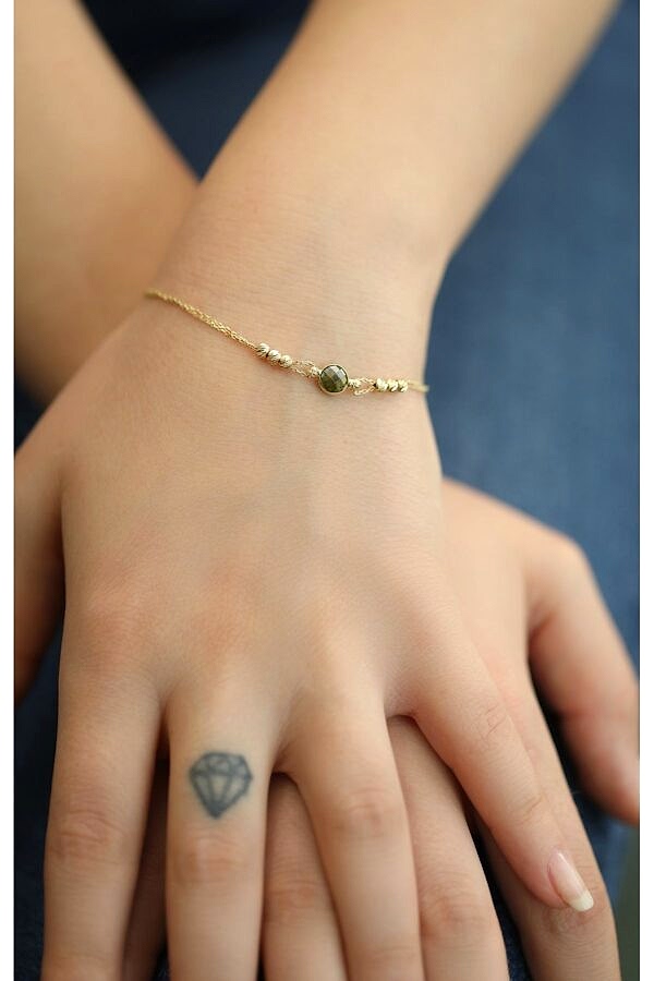 14 Ayar Altın Dorikalı Yuvarlak Yeşil Taşlı Bileklik, Anneye Eşe Sevgiliye