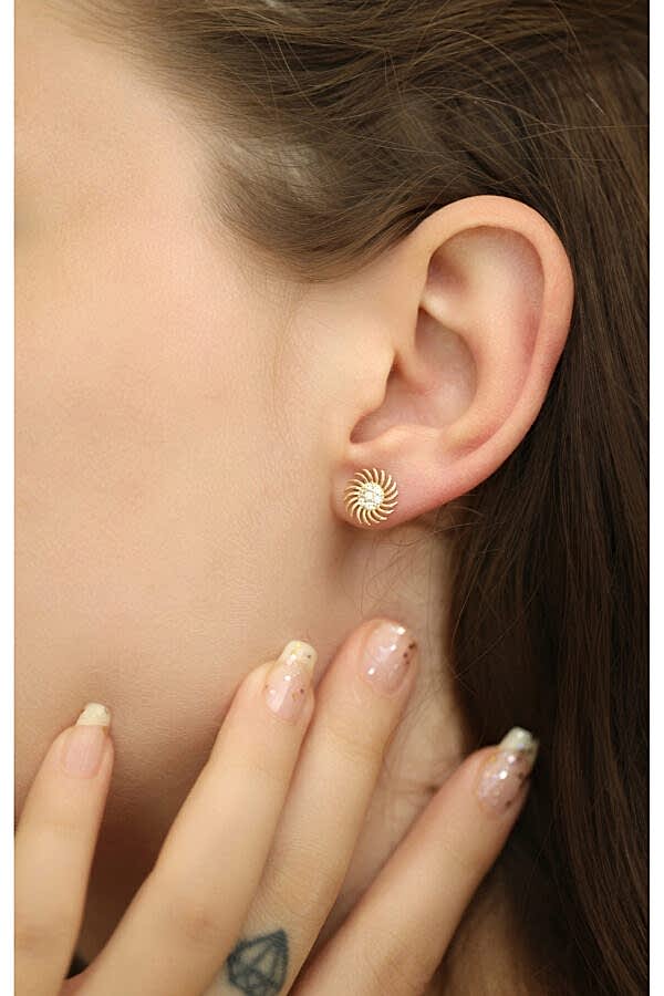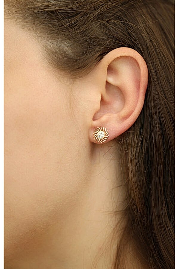 14 Ayar Altın Vidalı Sun Küpe, Anneye Eşe Sevgiliye Hediye