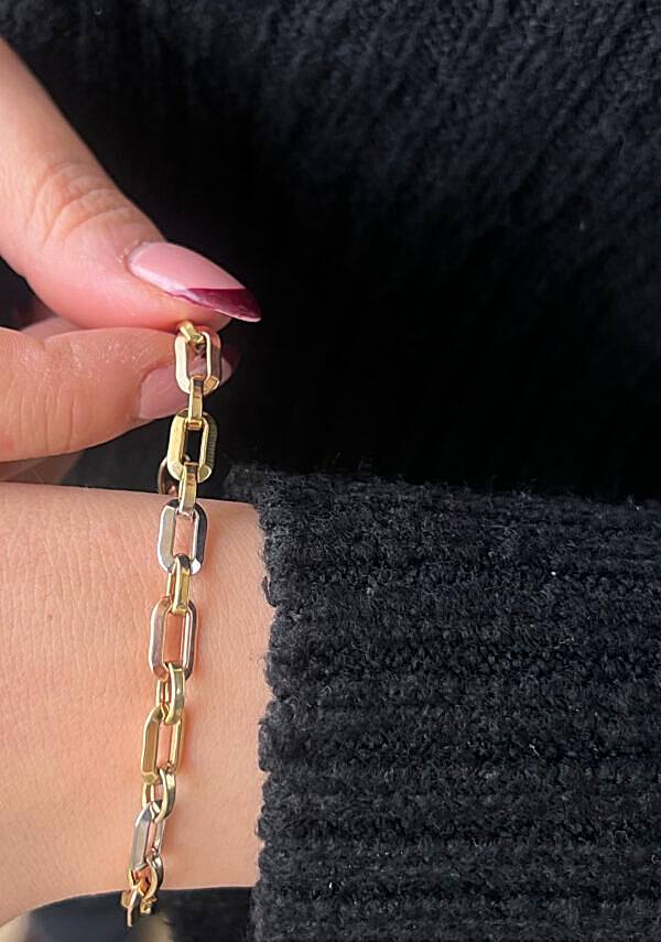 ₺12.598,00Orijinal fiyat: ₺12.598,00.₺11.452,72Şu andaki fiyat: ₺11.452,72.14 Ayar Altın Golden Bond Bileklik